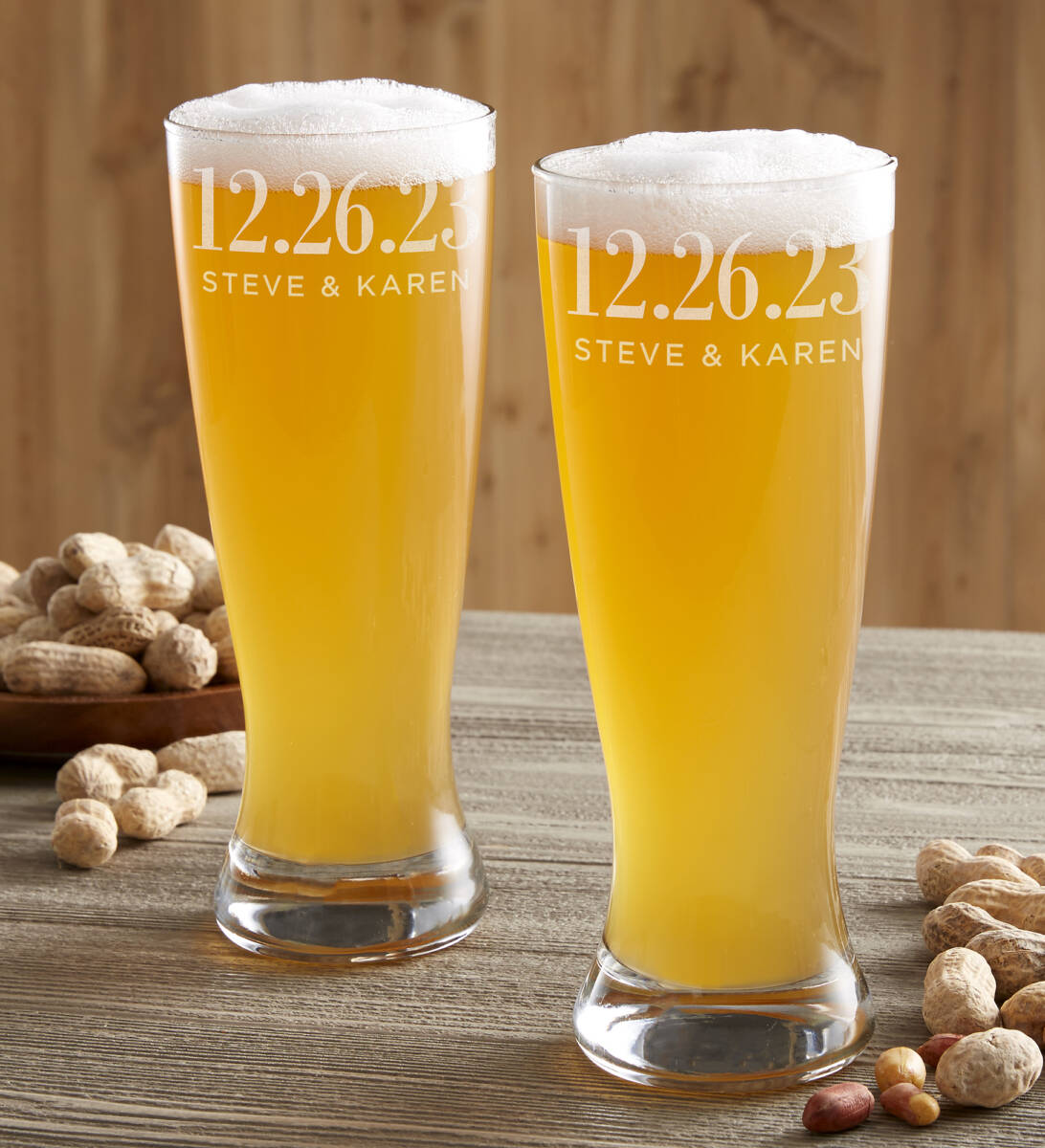 Every time your guests go to quench their thirst with the contents of one ofthese glasses, they'll instantly think of you. There's something for everyone here, as they come in a wide variety of shapes and styles: pilsner, pint, wine (both stemmed and stemless), whiskey, and beer can.
